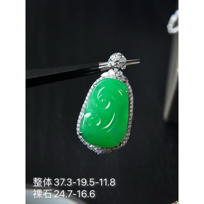 Jade pendant, 18k gold inlaid Buddha pendant, overall: 34.2-24.7-10.1, bare stone: 22.9-24.7