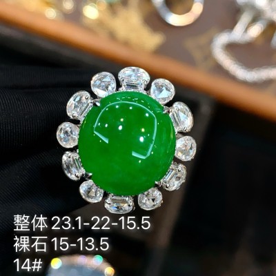 Emerald ring, full of green egg face ring, large diamond setting, overall: 23.1-22.15.5, bare stone: 15.0-13.5